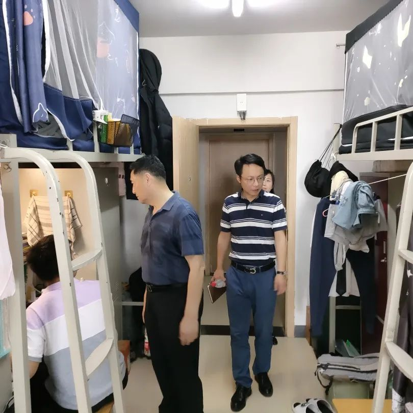 紧接着刘董事长一行走访了公司员工宿舍,深入了解员工生活环境,仔细检查宿舍清洁卫生,叮嘱同学们要营造积极健康的宿舍文化。刘董事长提醒同学们要合理安排时间,在认真学习的基础上,积极参加社会实践活动。同时要提高个人疫情防控意识,做好常态化疫情防控措施。宿舍走访拉近了校院领导与员工之间的距离,给同学们带来温暖的人文关怀。