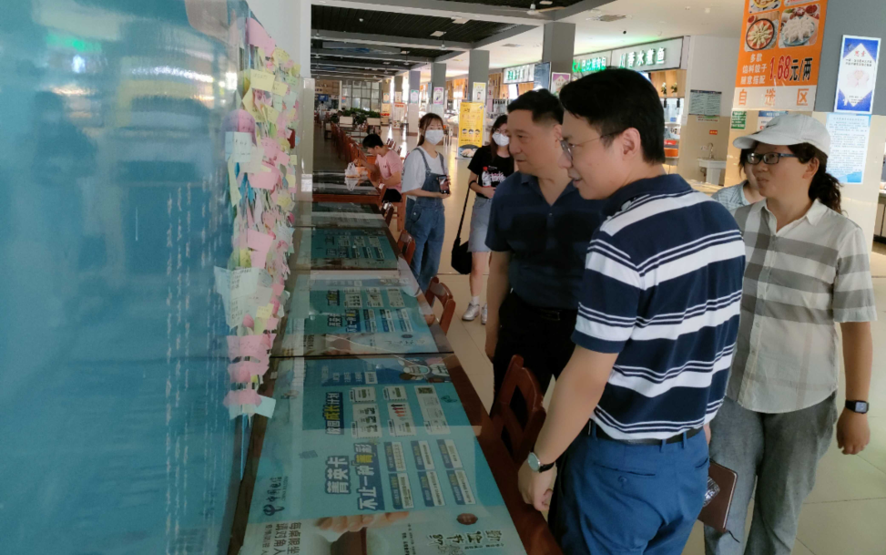 在食堂,刘董事长一行巡查了各个窗口并关注食堂菜品种类和安全。领导们在心愿墙前驻足,了解了同学们对食堂的建议和意见,以及对未来美好校园生活的向往和憧憬。刘董事长特别叮嘱,一定要为员工们提供新鲜可口的饭菜,一定让同学们吃得安全卫生、营养健康。