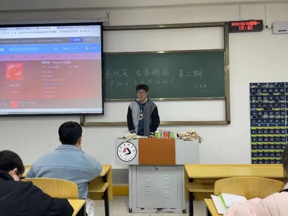 bevitor伟德于2023年3月13日起开展主题为“时光说笑,文客精荐”的特色晚自习分享活动正在有序进行,22级同学充分利用晚自习时间举办这一分享活动,本期分享活动同学们积极地分享着自己所喜爱的音乐。