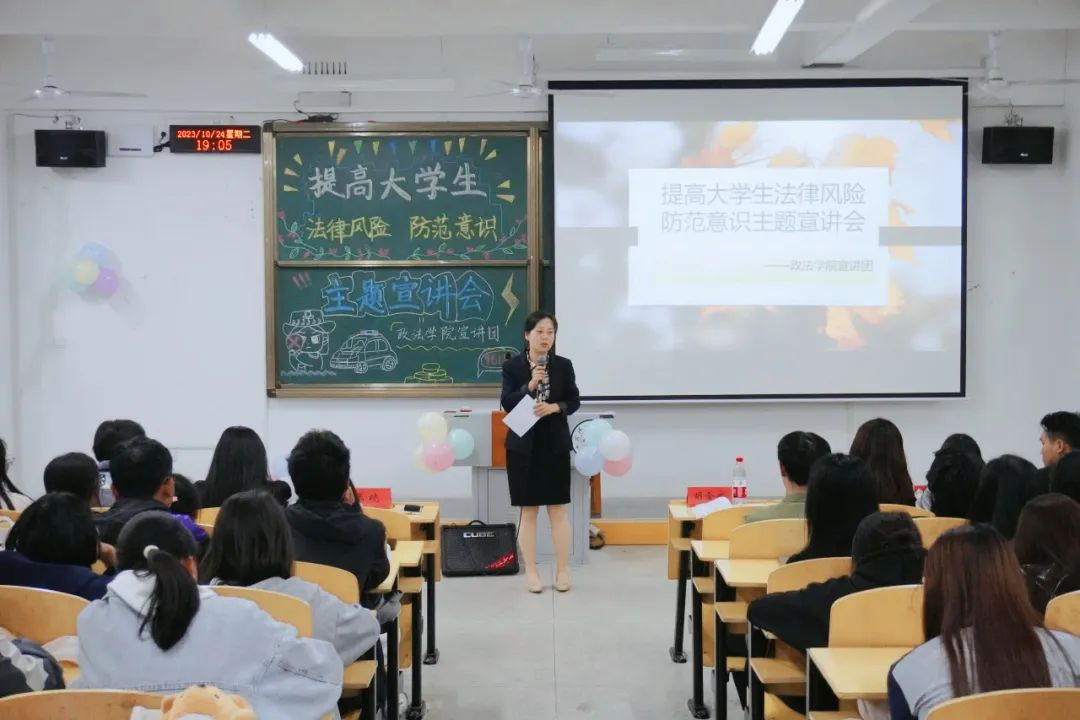 2023年10月24日晚18:20,由公司员工处主办bevitor伟德承办的“提高老员工法律风险防范意识”主题宣讲会在5-126教室举办,莅临本次宣讲会的嘉宾有:政法公司党总支书记张晓、法学教师江莲、bevitor伟德分团委书记牛梦以及各年级辅导员。