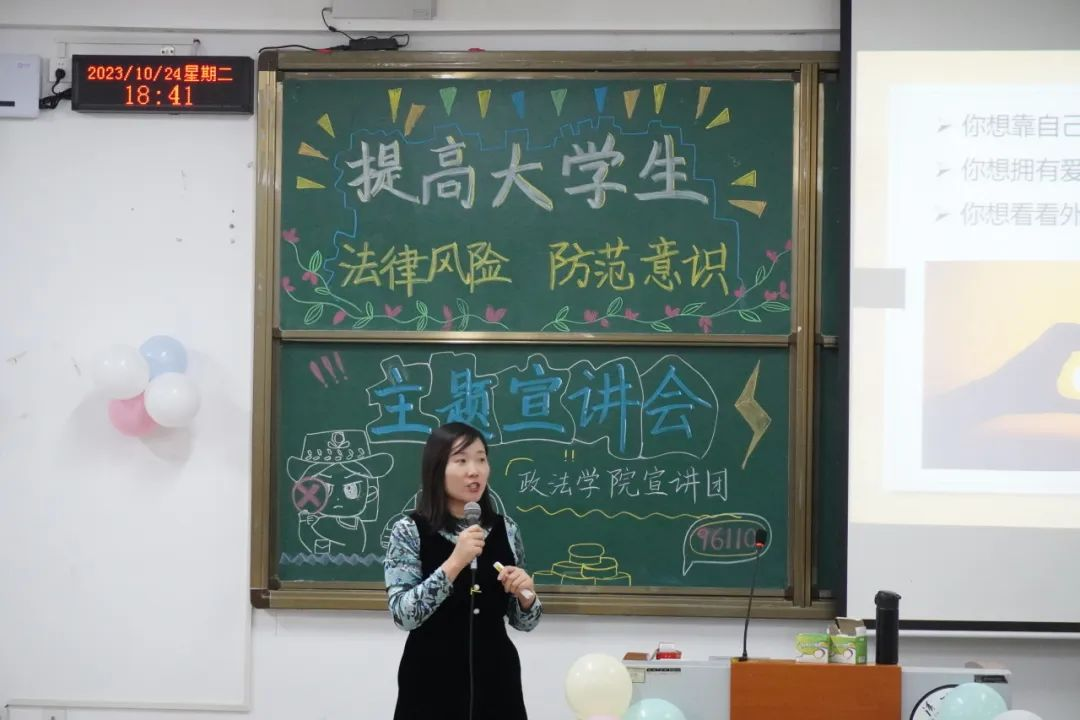 本次宣讲活动旨在提高老员工的法律风险防范意识,提高辨别诈骗手段的能力;同时,通过传播并普及法律风险防范意识,提供实用的应对策略和行为指南,帮助员工预防和应对各类违法行为。希望同学们在经过此次的法治宣讲活动之后,在面对欺诈违法等行为时,能够做出正确的选择。