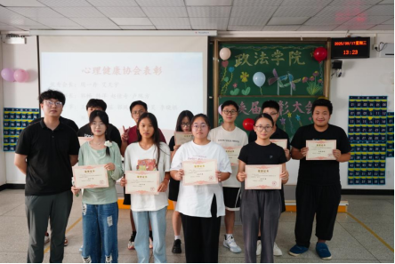 心理健康协会:田苗(优秀会长),周一丹,艾天宇,黄章帆,岳麟璇,李乐乐,任秀兰(优秀部长),韩洋,赵佳奇,郭畅,卢陈方(优秀干事)