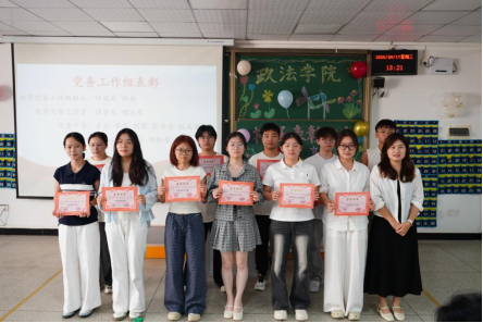 党务小组:田宛右刘韵(优秀党务工作组组长),谭登允,魏玉雪(优秀党务工作者),符佳佳,辛杰,殷武爽,黄蓉,刘琴,潘如轩,胡向沐,胡轩睿(优秀党务工作者)