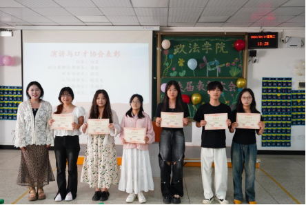 演讲与口才协会:社长—向贝、副社兼辩论部部长—潘金、财务—程洁、礼仪部部长—陈宜美、演讲部部长—李润霞、外协部部长—倪丽珊