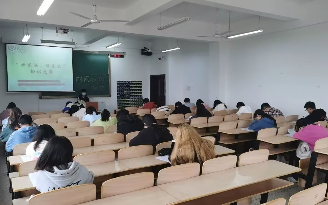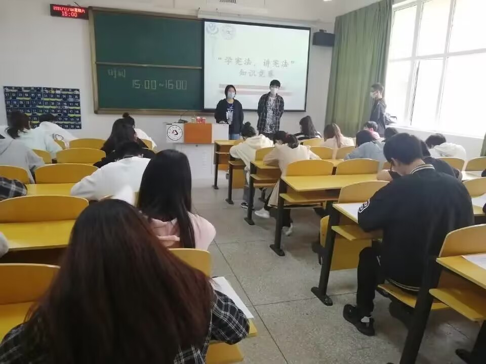 各班级在早自习教室开展“学宪法,讲宪法”知识竞赛第一轮选拔,比赛是以抢答的形式进行的。