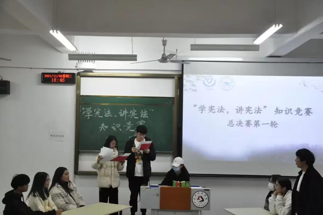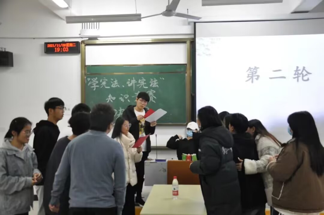 经过层层选拔,终于来到了决赛现场。决赛分为三轮,有必答题和抢答题。参赛选手面对必答题沉稳冷静,面对抢答题争分夺秒,可以看出选手们对竞赛题目早已烂熟于心。中场休息时还准备了小游戏,现场氛围十分活跃。相信通过这次比赛,大家对宪法会有更加深入的理解和感悟。