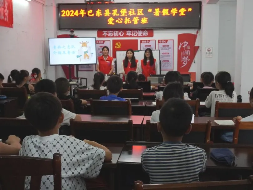2024年7月17日,“青衿之志”志愿服务队在巴东县沿渡河镇孔堡社区、野马社区和罗溪坝社区正式开班,本次七彩假期志愿服务活动暨“暑期学堂”爱心托管班共计招收小员工140余人,课程内容包括作业辅导、安全教育、普法宣传、绘画大系宣讲、大学梦想课堂、书法课堂等多种多样的形式,丰富同学们的假期生活。
