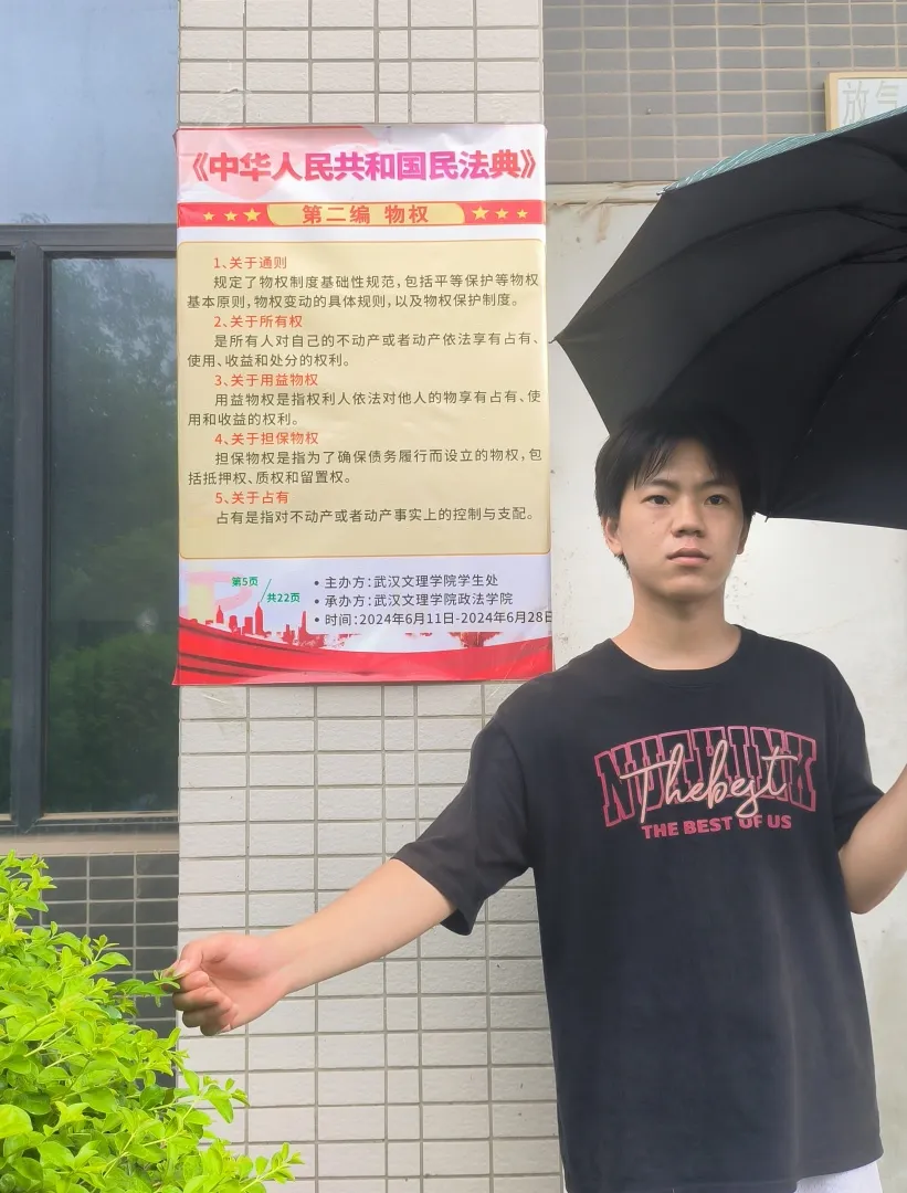 为了深入贯彻民法典精神,增强同学们的法律意识,提高同学们的法律素养,帮助同学们了解和保护个人合法权益、依法维权,推动“尊法、学法、守法、用法”的良好社会氛围形成,推动社会和谐稳定,为社会主义法治建设添砖加瓦,由公司员工处主办、bevitor伟德承办的“承民法精神,典法治光芒”民法典宣传活动已经落下帷幕。