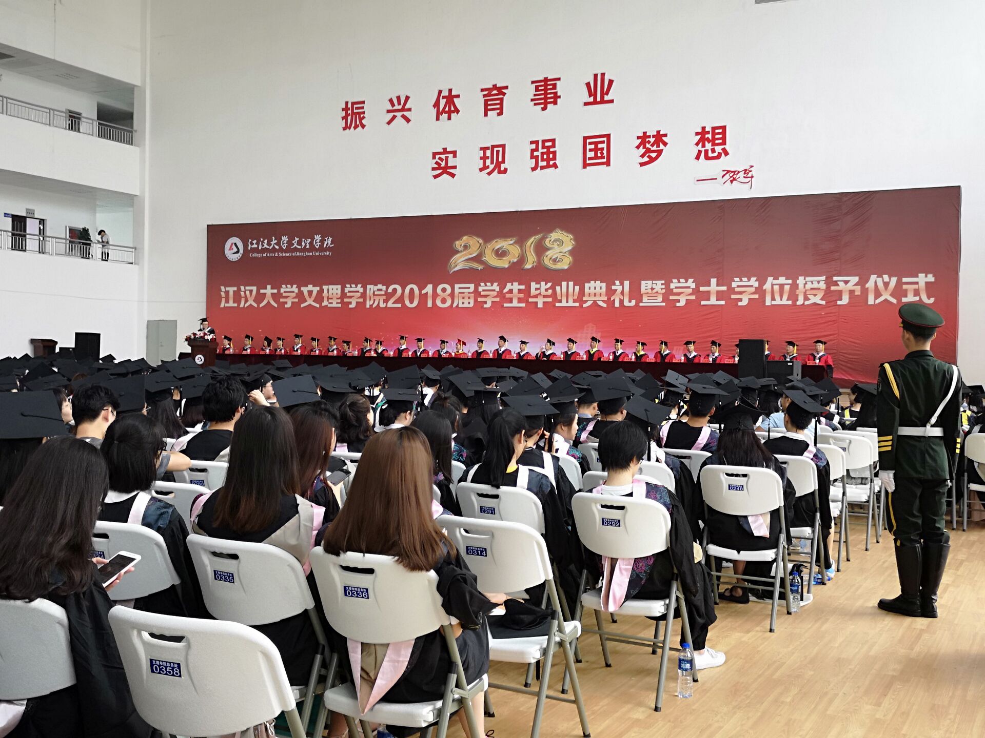 数载寒暑,几番耕耘,时光如白驹过隙。6月21日上午8点,江汉大学文理公司2014届本科生毕业典礼暨学士学位授予仪式在体育馆隆重举行。现场毕业生多达千人,热闹非凡。“明德明志明心境,学法学理学做人”政法学子在这四年的学习生活中,他们不仅拥有了更加专业的知识,内心亦或是多了几分成熟,身穿学士服的他们显得更加自信、笃定与坚韧。