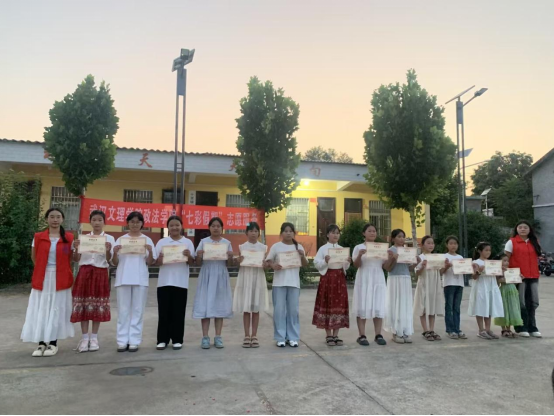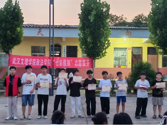 舞台中央的聚光灯,不仅照亮舞台,更聚焦成长!本次演出特别设置颁奖环节,既为暑期学堂里努力学习、进步明显的孩子提出表扬,见证“知识和成长双向奔赴”;也为辛勤付出的志愿者“小老师”和带队老师颁发荣誉,感谢他们的默默耕耘。BEVITOR伟德“青衿之志”志愿服务队荣获十里铺村赠予锦旗,以表彰团队在暑期“三下乡”社会实践中的辛勤付出。志愿服务队扎根乡村,用实际行动践行青春担当,这份荣誉既是对志愿精神的肯定,更彰显了校地联动共筑温暖的美好情谊。