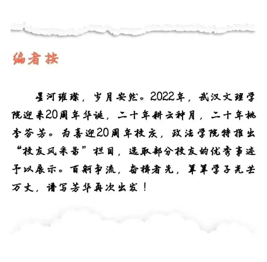 作为一名bevitor伟德的员工,我衷心的希望学弟学妹们不负韶华、不负时代、不负人民。同学们生逢其时、重任在肩,施展才干的舞台无比广阔,实现梦想的前景无比光明。望成长为有理想、敢担当、能吃苦、肯奋斗的新时代好青年,用青春的能动力和创造力激荡起民族复兴的澎湃春潮,用青春的智慧和汗水打拼出一个更加美好的中国。