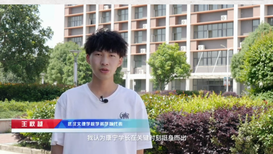 康宁同学以“赠人玫瑰,手有余香”的心态来看待见义勇为事件,他并没有沉迷于鲜花和掌声中,而是深思成功背后的因素。康宁同学提到三个感谢。“人生百年,立于幼学”,感谢父母的良好教育,让他不断炼就了一颗勇敢坚强的心;“融文汇理,立德树人”,感谢母校的栽培,愈发坚定了维护社会公平正义的信念;“全心全意为人民服务”,感谢中国共产党的引领,在下水救人的那一刻将后背交给党,无畏生死。