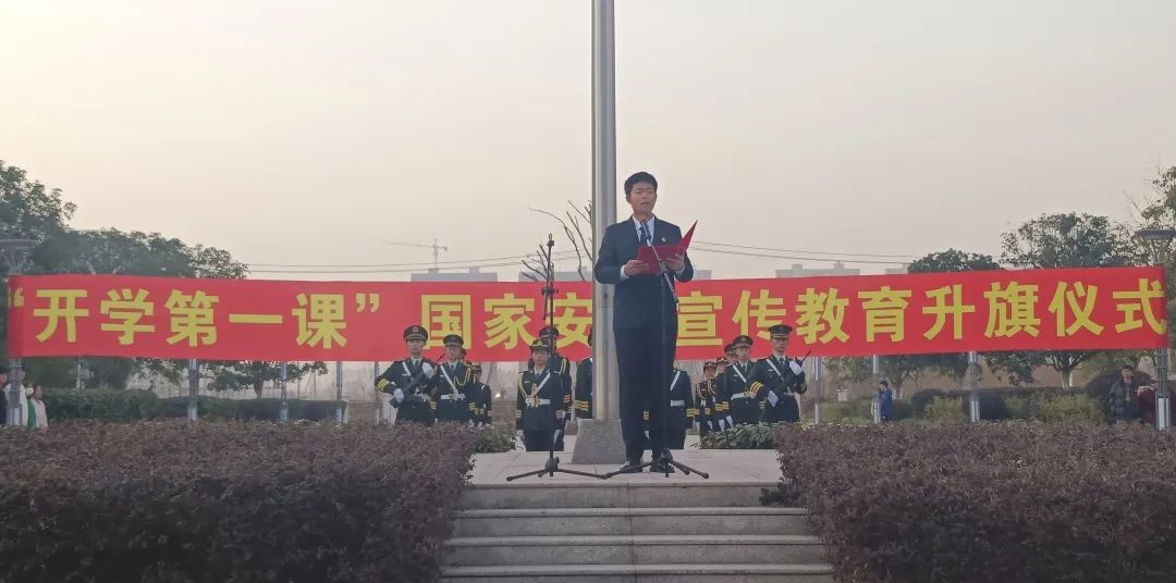 在师生的热切注目下,国旗护卫队精神抖擞,踏着铿锵有力的步伐护送国旗进场。7时许,在初升太阳的映照下,激昂的国歌声响起,鲜艳的五星红旗冉冉升起,师生肃立齐唱国歌。激昂国歌里,拳拳赤子心,嘹亮的歌声,唱出文理学子的骄傲与自豪,展现新时期文理人的精神风貌。