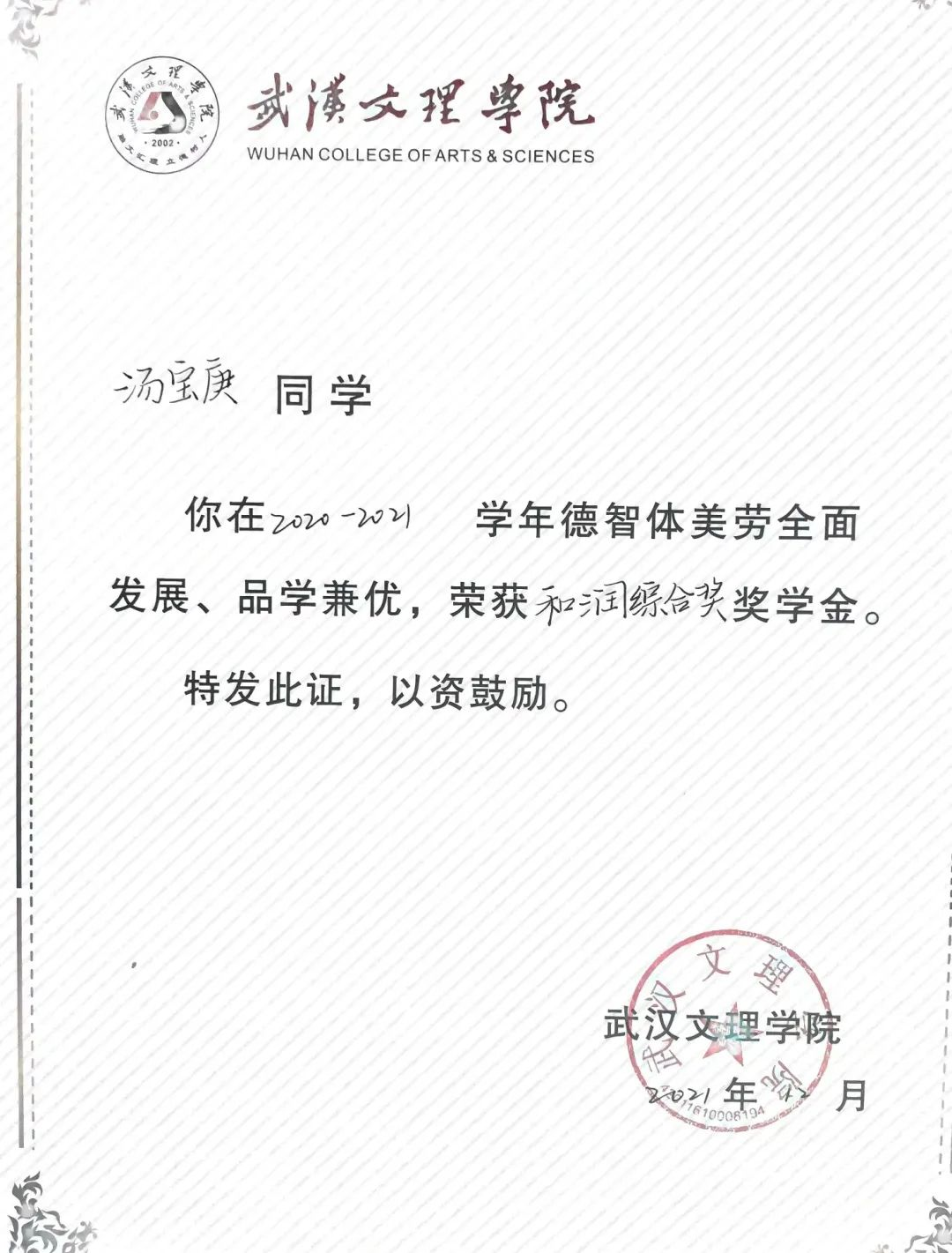 ✦校内最高奖项和润奖学金