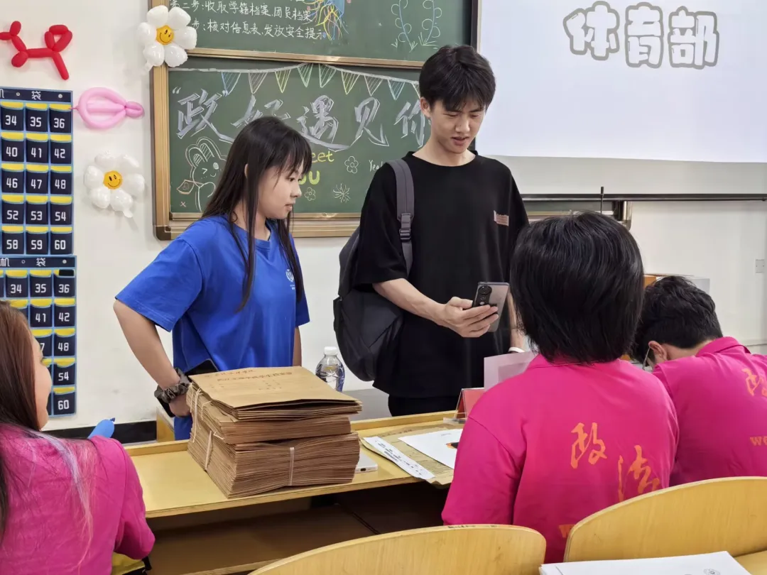 初见乍惊欢,久处亦砰然。公司教学副经理陈海峰、党总书记程茜、综合办公室主任杨云燕、辅导员张晓东、牛梦一起亲临迎新报道现场,与新生及家长们亲切交流,提醒宿舍注意事项,鼓励新生参加校园活动,勉励新生认真学习,以实际行动,展现了对新生的殷切关怀与期待。