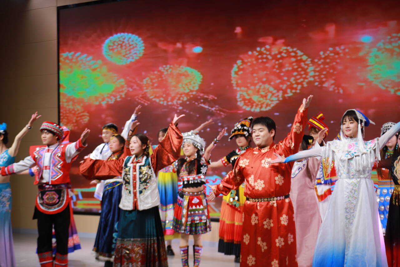 政法公司党总支带来走秀和舞蹈《民族团结繁星聚》,各民族欢聚起舞将现场欢腾氛围渲染至极致。
