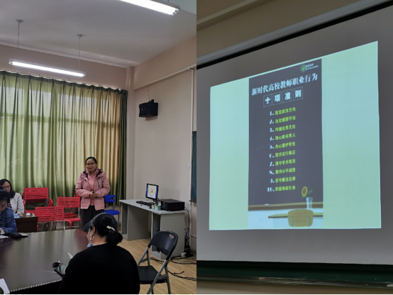 接着由法学专业系主任张卫容老师从法律的角度分享了以“教师职业风险防范”为主题的知识,让教师们了解了教师职业的底线和原则。