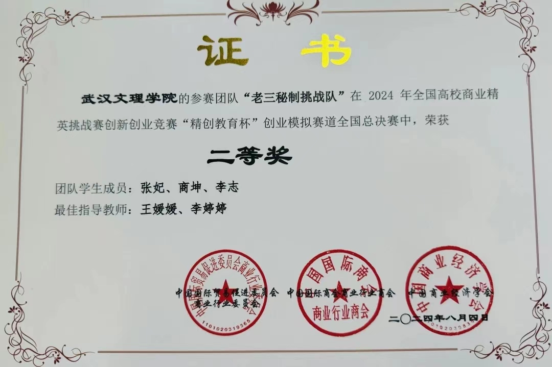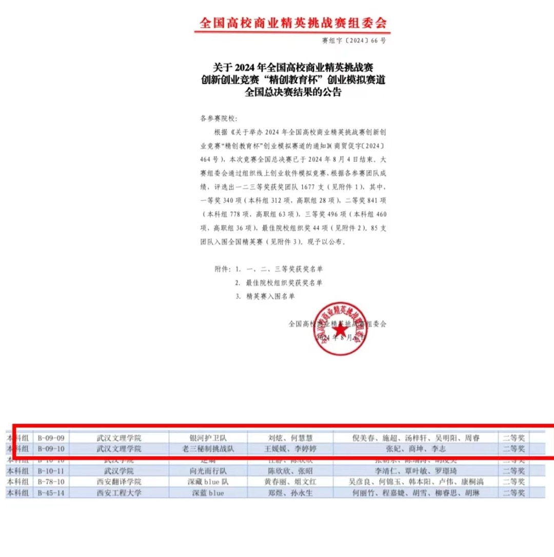 8月3日-4日,由中国贸促会商业行业委员会、中国国际商会商业行业商会、中国商业经济学会主办,浙江精创教育科技有限公司提供竞赛软件技术支持的2024年全国高校商业精英挑战赛创新创业竞赛“精创教育杯”创业模拟赛道全国总决赛于线上落下帷幕。公司4支参赛团队表现出色,喜获国家级二等奖3项,国家级三等奖1项的优异成绩。