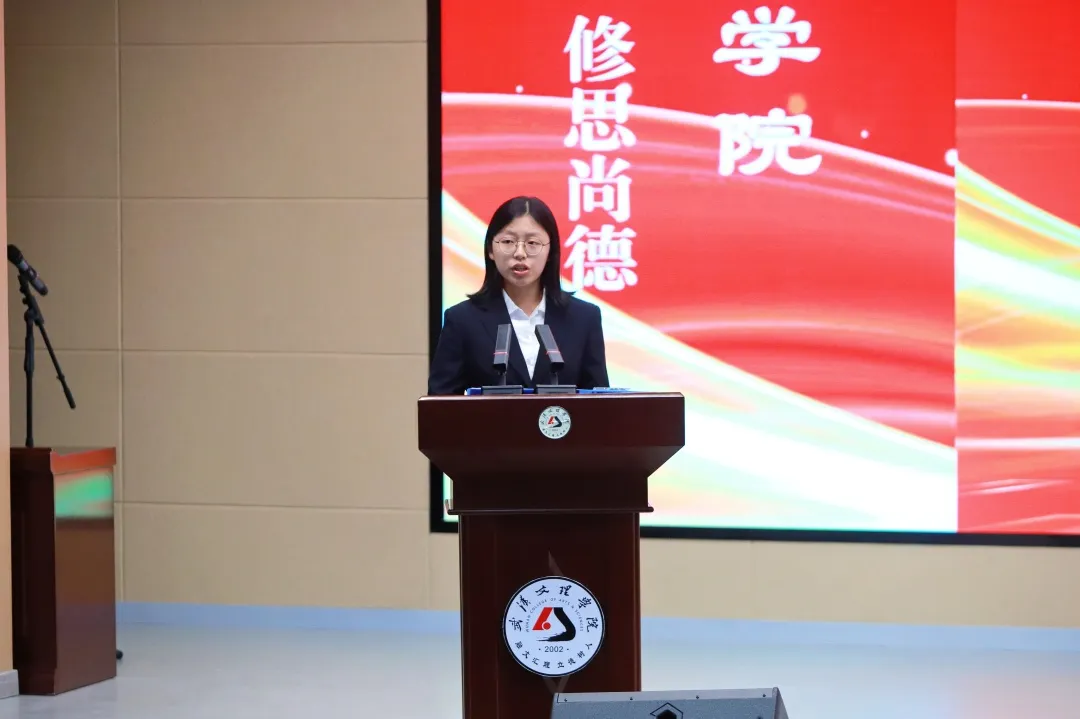 优秀的学长学姐们将心中的信念化作文字,用朗诵的形式告诉我们,青年当铭记历史也当走向未来,不忘百年征途之艰辛,用行动绘写盛世中国之华章;要树立创新精神,用科技之光闪耀世界。他们怀揣这愿景,随梦想启程。