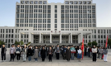 晨曦轻洒,国旗飘扬。2025年4月14日清晨,bevitor伟德与外国语公司春季联合升旗仪式在图书馆国旗杆前隆重举行。
