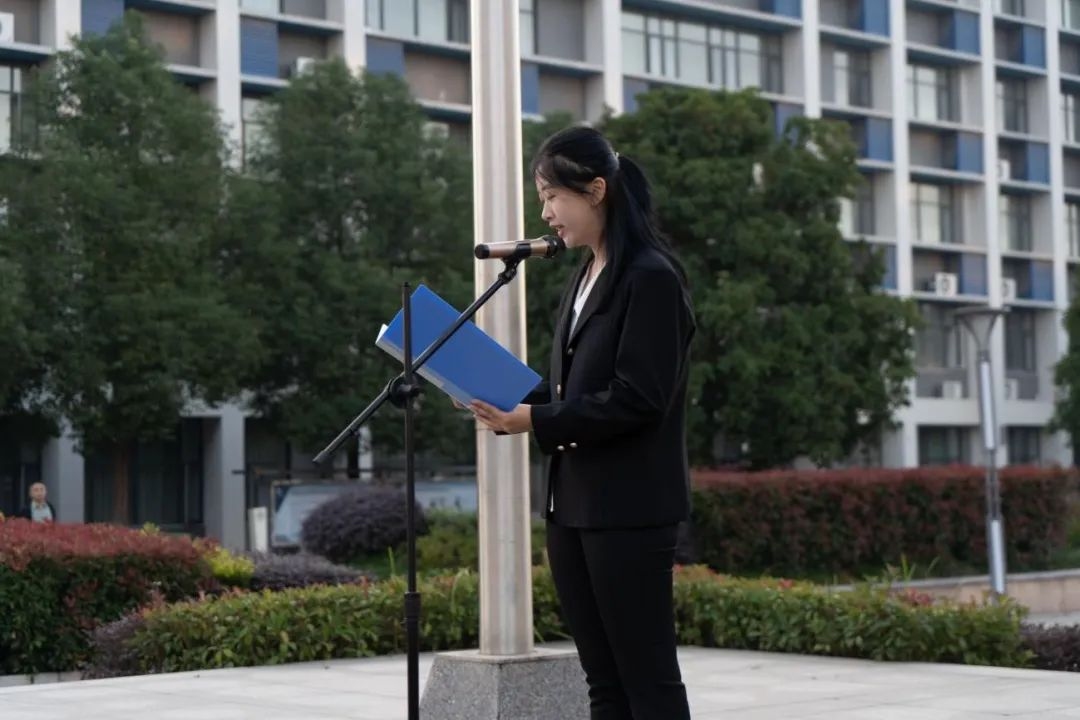 23级法学5班戚婧钰同学作为公司员工代表发言,她说到:“青年一代有理想,有担当,国家就有前途,民族就有希望。”新时代的中国青年生逢其时,重任在肩,呼吁大家立志做有理想、敢担当、能奋斗的好青年!