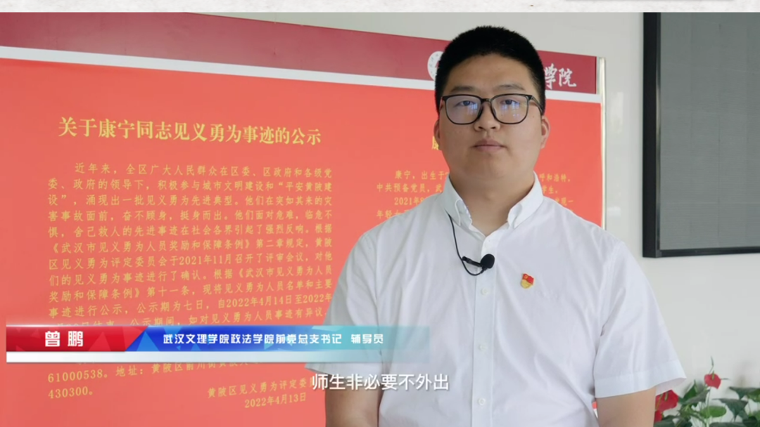 康宁同学以“赠人玫瑰,手有余香”的心态来看待见义勇为事件,他并没有沉迷于鲜花和掌声中,而是深思成功背后的因素。康宁同学提到三个感谢。“人生百年,立于幼学”,感谢父母的良好教育,让他不断炼就了一颗勇敢坚强的心;“融文汇理,立德树人”,感谢母校的栽培,愈发坚定了维护社会公平正义的信念;“全心全意为人民服务”,感谢中国共产党的引领,在下水救人的那一刻将后背交给党,无畏生死。