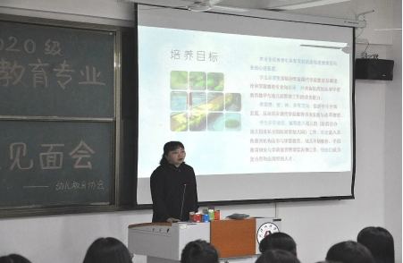 午后暖阳慵懒撩人,但也抵挡不住新生们的热情。法学专业系主任张卫容老师从三方面着手,对法学专业作了全面的介绍。会上,张老师还指出希望每位法学新生都做出属于自己的大学专业规划。愿每位新生入学时空白的画纸,在四年后都能变成美丽充实的画卷;应用心理学专业系主任王梦老师由点及面,用一个问题扩展出应用心理学专业的发展历程和未来规划,最后用王国维先生的词“昨夜西风凋碧树”寄予新生们深刻的期望:要排除干扰,清晰地看到远方,不为暂时的烟雾所迷惑;学前教育专业的贺霞老师指出专业理论课程和专业技能课程的重要性,只有掌握好专业理论知识与专业技能,才能更好地运用到未来工作中。贺霞老师鼓励员工们以昂扬的精神投入到专业学习中,全面发展,不负青春时光。