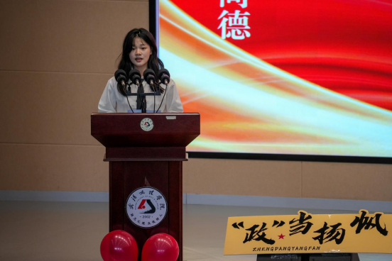 覃美亭同学不仅表达了拿到录取通知书的憧憬与激动,还在期待中反思提出四点与大家共勉:以“勤”为基,筑牢知识根基、 以“思”为要,培养法律思维、 以“行”为实,积极参与实践、以“正”为魂,坚守初心底线。她号召全体新生珍惜韶华,不负师长期望,在求知路上始终保持热忱与谦逊,将个人理想融入法治中国建设的时代洪流。唯有脚踏实地,方能仰望星空;唯有坚守信念,才能行稳致远。她的话语朴素而坚定,如春风化雨般浸润着在场每一位新生的心田。