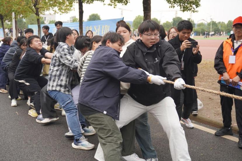 此外,拔河、接力赛、两人三足,无不展现团队的力量。观众席上,他们用整齐的口号点燃赛场氛围,用真诚的喝彩传递温暖与鼓励。裁判员们秉持公正初心,目光如炬、判罚精准,用专业与严谨守护赛场秩序,让每一场比拼都公平公正、掷地有声。志愿者们默默坚守岗位,布置场地、保障后勤,于细节处筑牢赛事根基,在点滴小事中确保运动会的顺利运转。