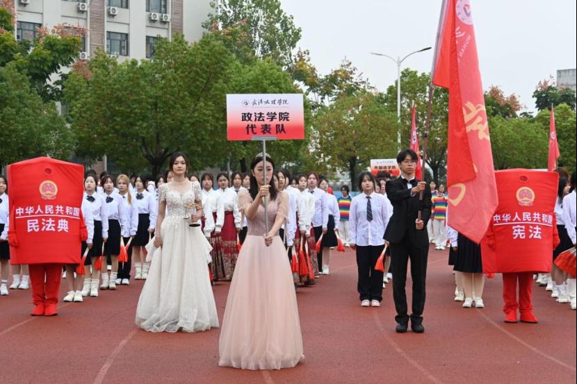 运动会开幕式,升国旗、奏国歌时嘹亮的声音响彻整个田径场,啦啦队、图案舞、跆拳道展示、舞龙舞狮表演、团体舞、彩球队以及各公司方阵,他们迈着整齐的步伐,昂首阔步,在主席台前一展雄姿。且看bevitor伟德方阵,学子们的步伐铿锵有力,雄赳赳气昂昂,礼仪队员手持天秤,展现了政法学子对公平正义的追求。