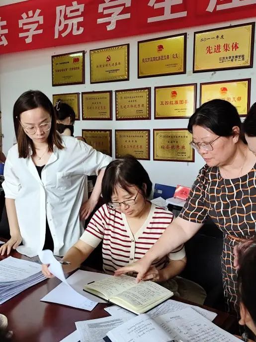 随后,检查组对公司准备的相关教学材料进行了全面细致的检查。教务处李耀宗处长对人才培养方案的设计以及一流本科课程的申报情况进行了明确指导,指出这些事项有关法学专业与行政管理专业的发展,必须在设计上严谨科学,落实中具体到位。教务处副处长邓弥弥以及蔡超老师主要负责教师及员工座谈会、全员听课、教研室活动开展等情况的检查。