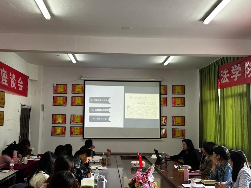 接下来,法学系主任罗平老师为教师们带来了“课题申报分享”的专题培训。今年罗平老师申报的两个课题获得立项,她认为,社科类课题申报是一个复杂而细致的过程,涉及多个环节和要素。在前期准备阶段要仔细研读相关社科基金及教育部人文社会科学研究等项目的申报指南,确保对各项要求有全面而准确的理解。选题应具有创新性、前瞻性和实用性,能够反映学科前沿或解决现实问题,立足自身学术背景和研究方向,寻找独特的研究视角和切入点。在申报书的撰写上,罗平老师强调要阐述自己的研究思路、研究方法和技术路线图,确保逻辑清晰、条理分明,必要时借助图表进行说明。不要等到申报指南发布后再开始准备,应提前进行文献综述、选题论证等工作。最后,罗平老师鼓励大家对于申报过程可能充满挑战和困难,但要保持耐心和信心,在课题申报过程中,碰壁是常有的事,要不断总结经验教训,相信自己能够成功申报到理想的社科类课题。