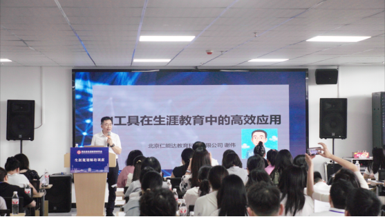 培训期间,行业专家的精彩授课为参训教师带来了前沿视角与实战经验。仁能达生涯研究院经理谢伟以“生涯教育理论体系与AI工具应用” 为主题,深入剖析了智能技术如何为生涯教育赋能——他提出的 “智能体分身” 辅导模式,通过模拟个性化沟通场景,可精准匹配不同专业员工的职业困惑,这一方法让罗笑含深受启发:“公司员工涵盖法学、行政管理两个专业,未来可尝试用AI智能体为员工定制职业探索路径,比如针对法学专业员工模拟律师事务所实习场景、针对行政管理专业员工搭建基层岗位认知模块,让生涯指导更具针对性。”