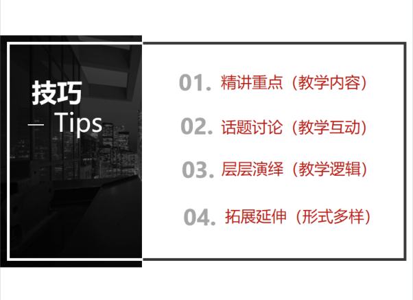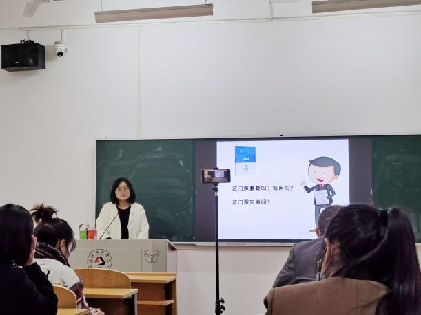 具体分为三个方面:1.概括重点内容,切忌面面俱到;2.适度演绎,切忌照本宣科;3.回归法条、实务。随后,王老师分别以《合同法》和《国际经济法》为例,讲述她对这两门学科的课堂教学设计,主要包含课程认知、案例引入、真题演练、话题讨论及“我爱背法条”等环节。王老师的教学设计深入浅出、充实生动,参会老师们也学习到了很多增加课堂趣味的小技巧。