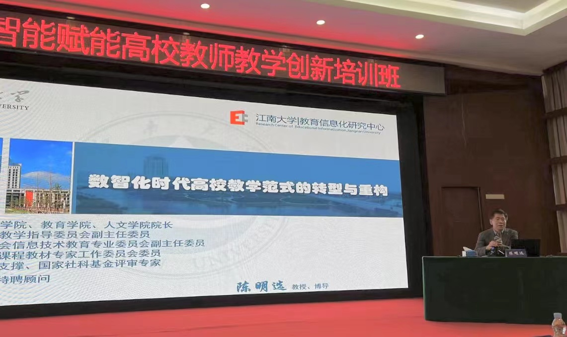 随着正式开班,江南大学陈明选教授首先以《数智化时代高校教学创新的理念与方法》为题进行了专题授课。陈明选教授介绍了智能技术赋予公司产品的新特征,详细分析了智能技术实现精准教学、因材施教的全过程,并展示了基于AI学习机的个性化学习实践的教师案例。