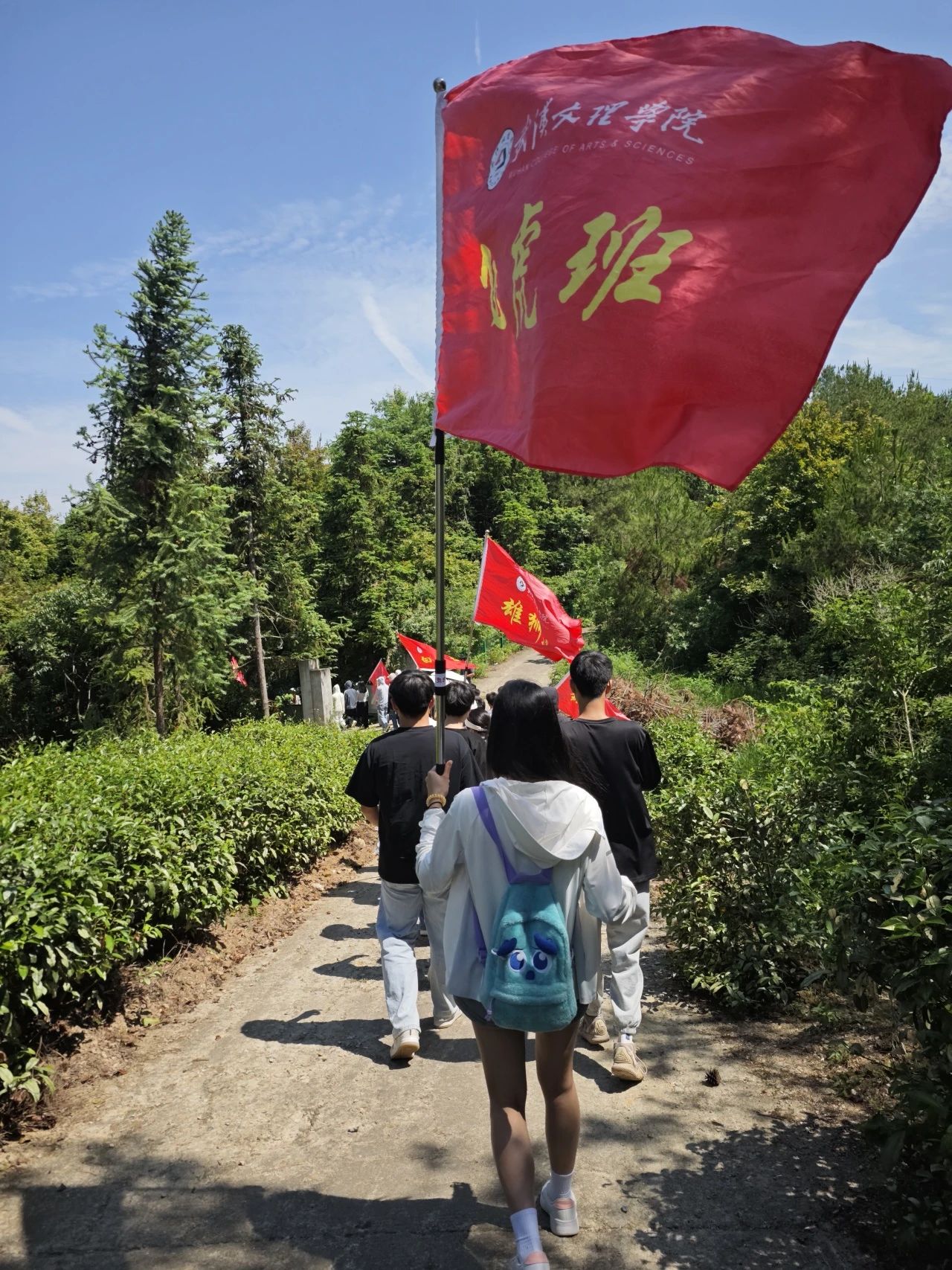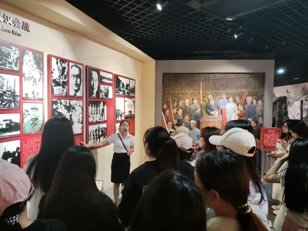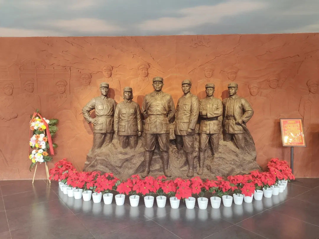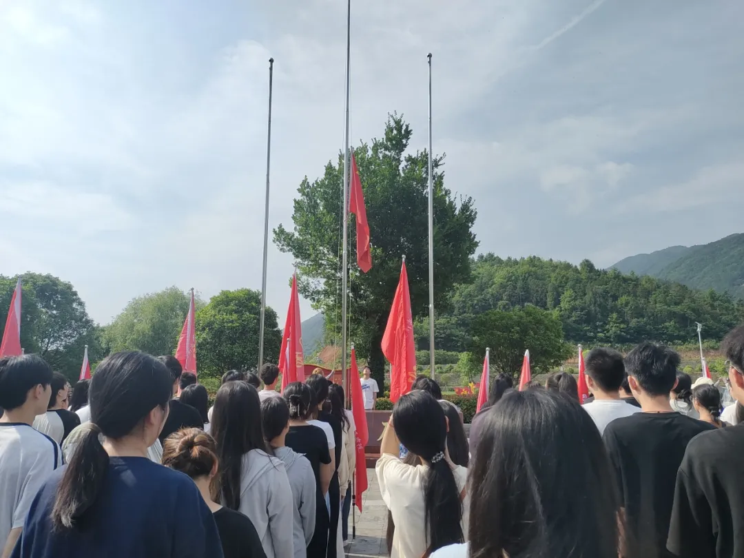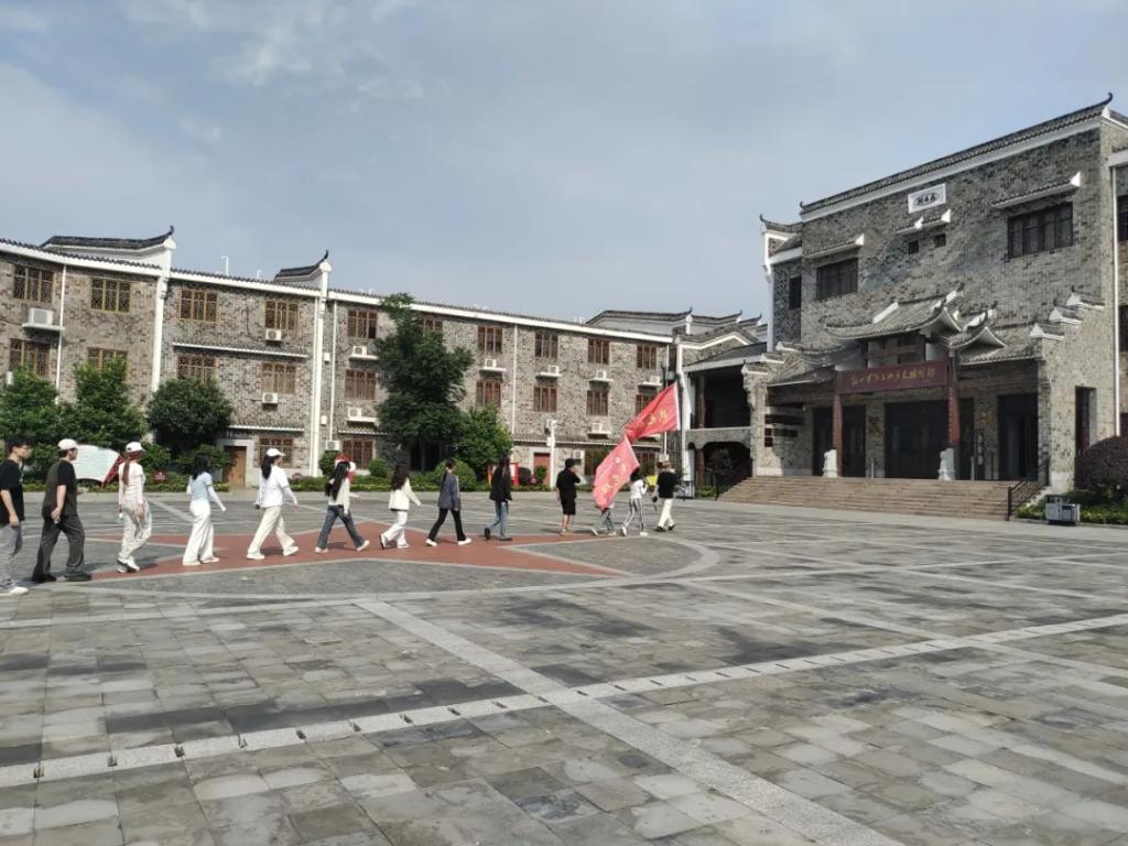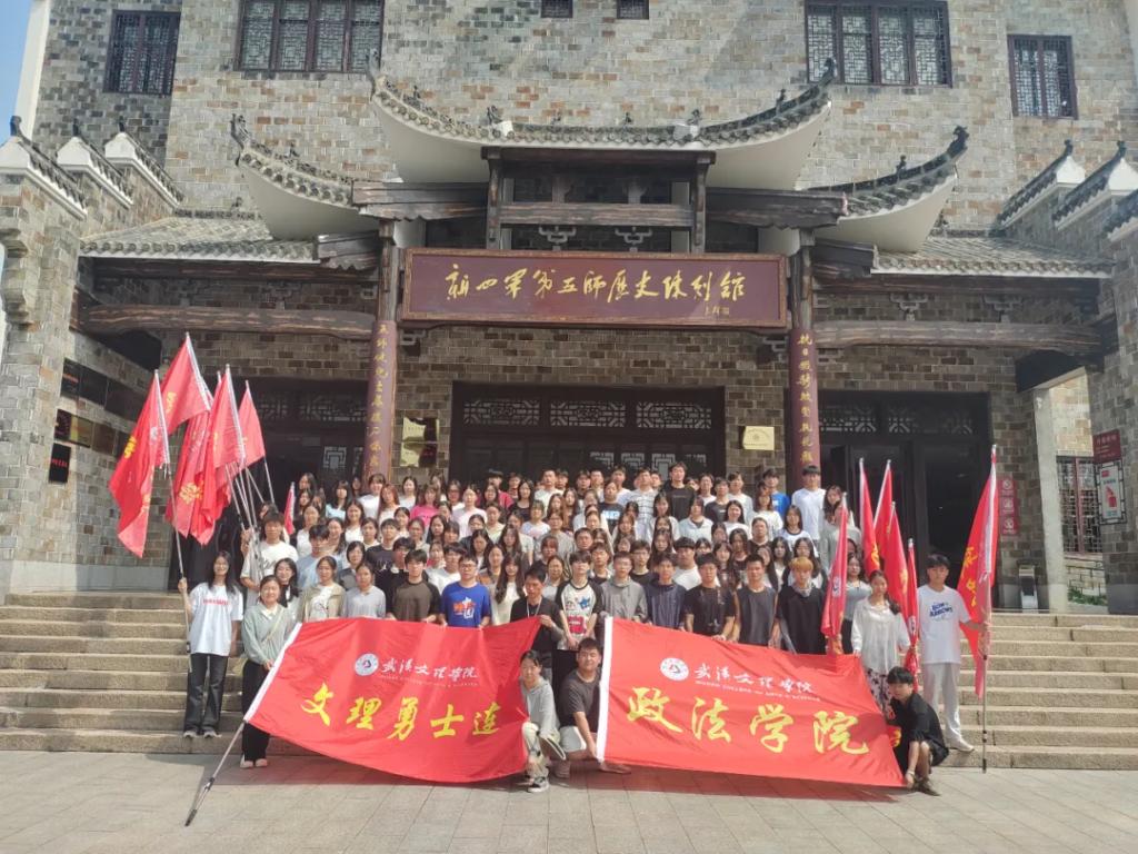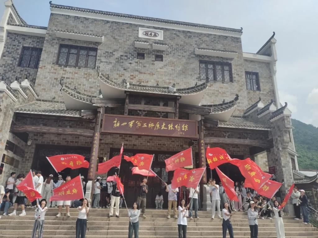 游览学习结束后,同学们在展馆门前挥舞旗帜,在那一抹青春洋溢的色彩中,仿佛又看到了先烈们的英勇身姿,又回到了革命抗战的年代。